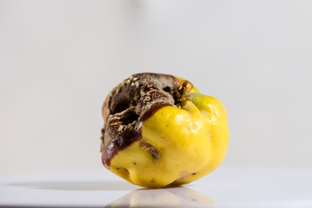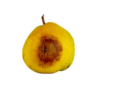 Rotten yellow pear on a white isolated background