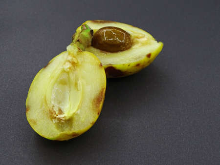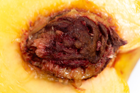 Ripe nectarine seed macro photography.