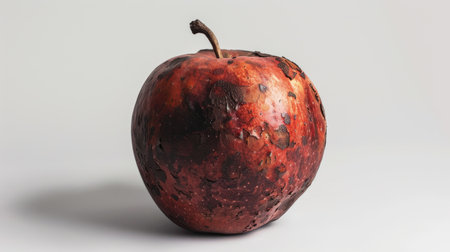 Old rotten apple on white isolated background, unhealthy to eat