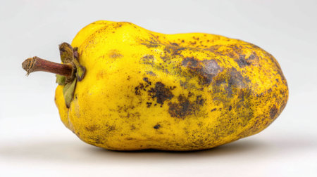 This image showcases a yellow ripe fruit with a distinct texture and natural blemishes, ideal for food-related projects and designs.