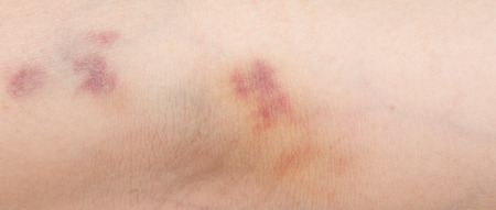 Bruise on the leg of a woman. A bruised leg. Close-up.