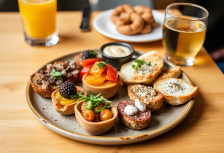 tapas with beer on wooden table