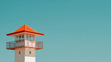 Lifeguard tower stands tall against a clear blue sky, providing safety at the beach during daytime with bright sunshine.