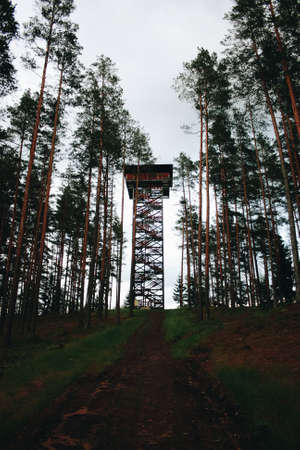 Forest watchtower in national park in Valka, Latvia