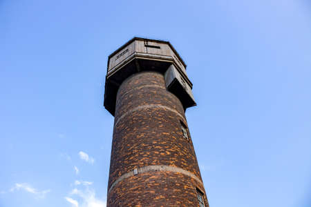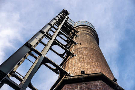 Old water tower building yellow brick wall European architecture tower top