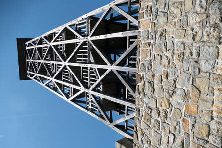 high new modern metal observation tower with decorative wooden elements
