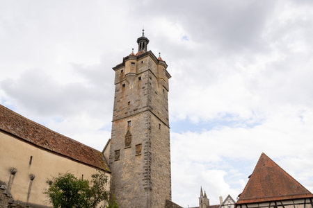 Klingentor gate and medieval city wall in Rothenburg ob der Tauber, Bavaria, Germany. Historic fortifications and well-preserved old town architecture, iconic European travel desti