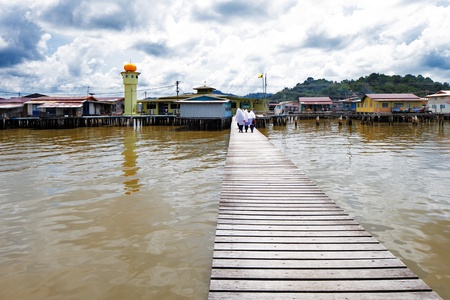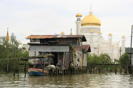 Kampong Ayer the floating village wooden Malay traditional houses standing on stilts on the river, Bandar Seri Begawan, Borneo, Sultanate Brunei Darussalam