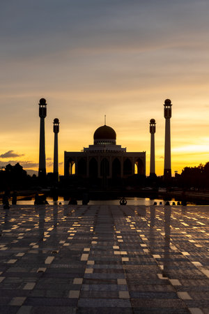 Landscape of beautiful sunset sky at Central Mosque in Songkhla province, Southern of Thailand.