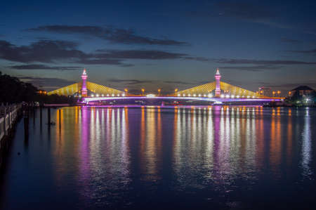 Bridge over the Chao Phraya River, turn on the LED lights at dusk.