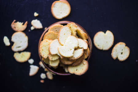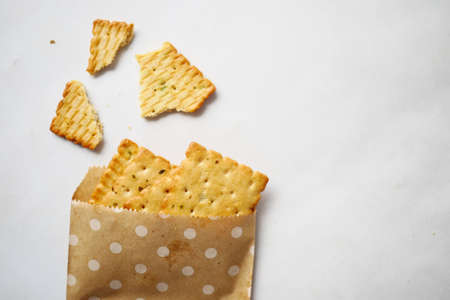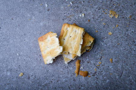 Broken dry crackers on the table