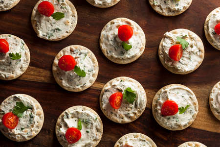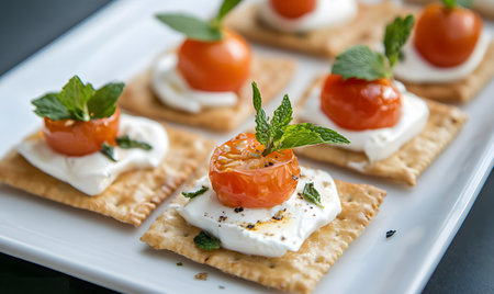Cracker and Cheese Hors D'oeuvres with Tomato and Parsley