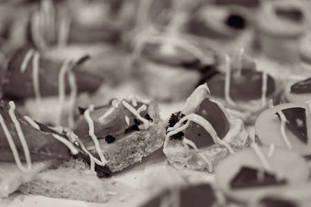 types of canapes for cocktails, note shallow depth of field