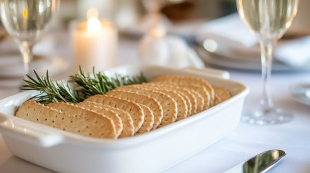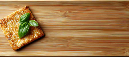 A captivating image of floating crackers adorned with fresh herbs, showcasing a blend of culinary artistry and natural elements in a vibrant green setting. Ideal for food enthusiasts.