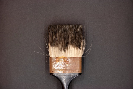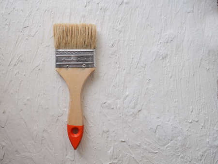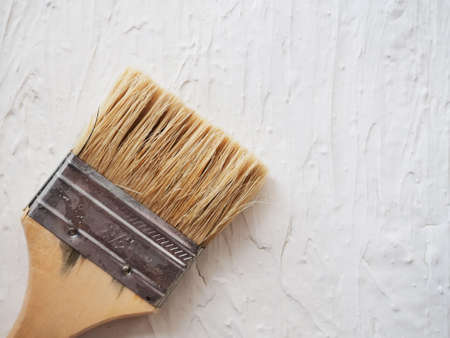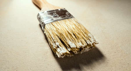 Worn paint brush on a light background. Space for text