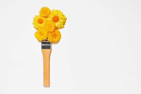 Paint brush and flower buds on white background