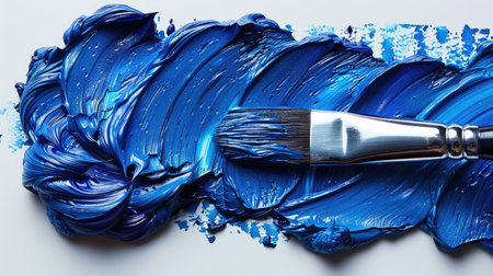 Paintbrush creating a splash of vibrant blue pigment powder. Symbolizing art, creativity, and the painting process