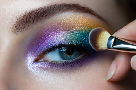This close-up image captures the moment of eye makeup application, showcasing vibrant colors and textures that enhance beauty. Perfect for beauty enthusiasts.