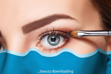 Young beauty doing makeup, close-up shot