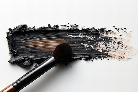 Black powder vividly spread out with a brush on a white background
