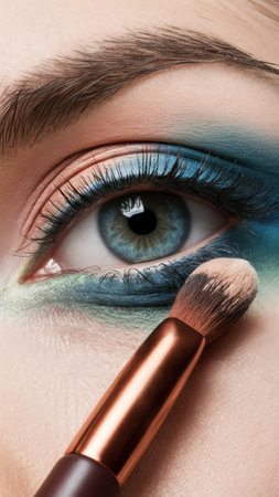 A woman with blue eye makeup and a brush in her hand, AI