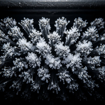 This macro image showcases a toothbrush head with bristles designed for effective cleaning and oral care, emphasizing the innovation in dental hygiene tools.