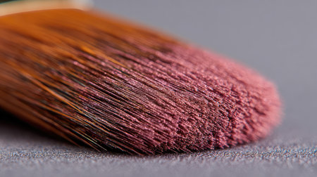 A detailed close-up of a makeup brush showcasing its soft bristles and rich color, ideal for beauty portfolios, cosmetics advertising, and artistic projects in the beauty industry.
