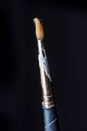 Close-up of a paint brush on a black background. Macro