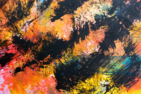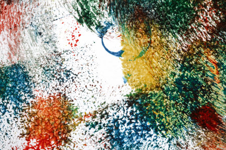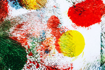 Abstract vibrant acrylic art background. Multicolor light and bright texture. Fragment of artwork. Spots of acrylic paint. Modern contemporary art.