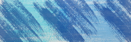 Blue and white abstract art painting on a brown cardboard. Creative abstract hand painted background. Dynamic brush strokes.