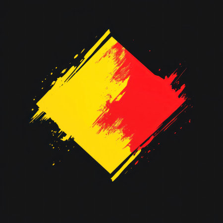 A simple, flat vector app logo for an art brand called 'Wagali'. The icon features two colors colliding together to form the shape of a square with a subtle paint splash effect. The bold and vibrant red color on one side blends into a yellow color at the opposite corner of the box in a simple style. The background is black. --v 6.1 Job ID: 1cbe0825-a9be-4035-b20d-6de1d3cfb9cd