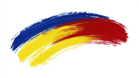 This image features a vibrant brush stroke combining yellow, blue, and red colors on a clean white background, perfect for artistic and creative uses.