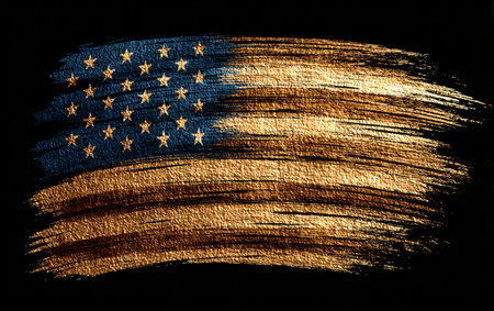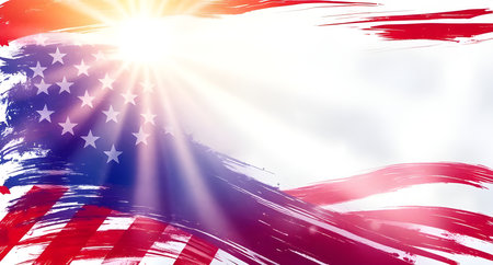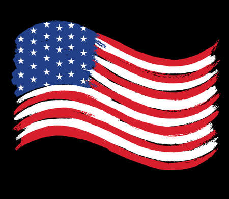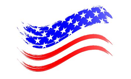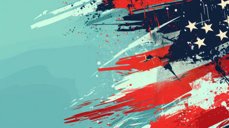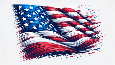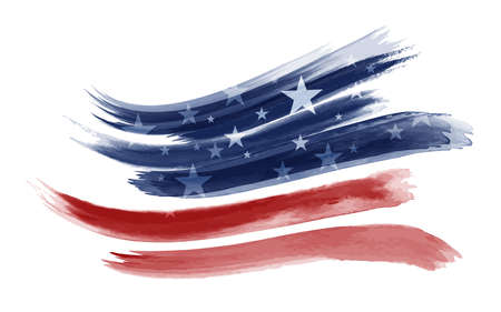 Patriotic American Flag Illustration with Brush Stroke Effects for Independence Day and Memorial Day