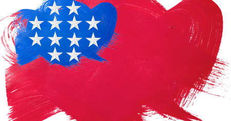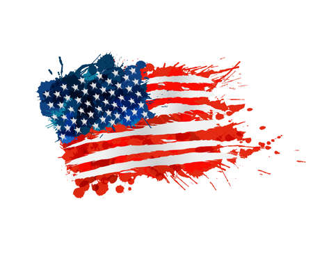 Abstract flag of United states of America made from watercolor paint splashes in red and blue colors with stars. USA national holiday concept background.