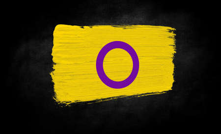 smear of paint in the form of the flag of intersex pride close-up on a black background