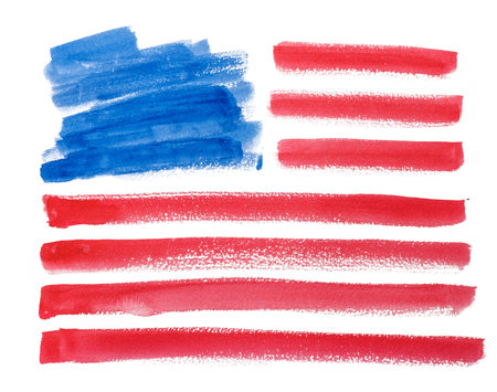 USA, american flag. United States of America. Hand drawn watercolor illustration.