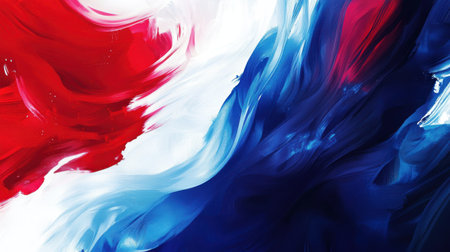 Colorful brush strokes create a dynamic blend of red, white, and blue, embodying a sense of movement and artistic expression in a captivating abstract design.