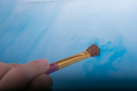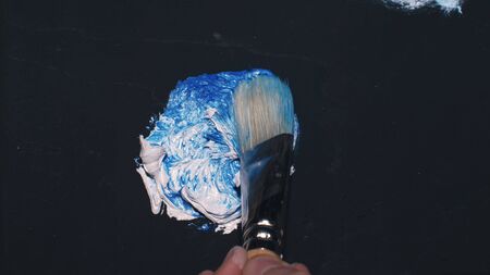 brush on top of finished work of an abstract textured painting or photography backdrop with blue and white tones acrylic paint
