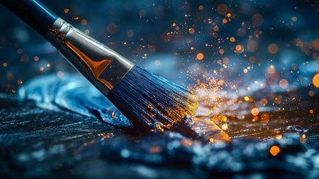 Paintbrush creating a splash of vibrant blue pigment powder. Symbolizing art, creativity, and the painting process
