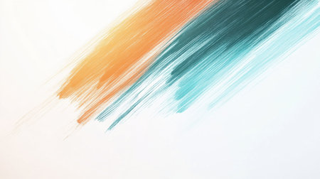 Abstract art with bold blue and orange acrylic paint brush strokes on white canvas, modern texture, vibrant color, contemporary minimal design trend.