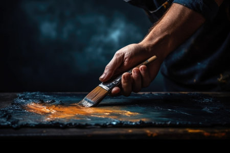 A person is using a brush to paint a piece of metal. This image can be used for industrial or artistic purposes.