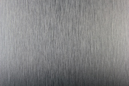 Close-up of a brushed metal surface showing varied texture and light reflections in soft shades of gray.
