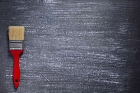 Painted background texture and paintbrush as abstract surface. Painted dark grey or black background canvas