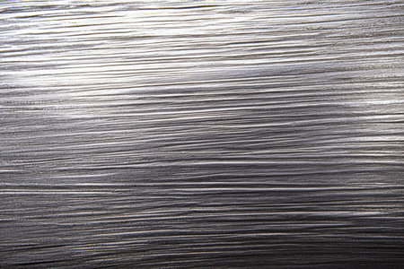 Captivating close-up of a shimmering silver metal surface, showcasing fine brush strokes and light reflections that evoke a sense of elegance and modern artistry.