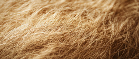 This close-up image showcases a plush, golden-brown fur texture, inviting touch and warmth. The delicate strands create a wave-like pattern, evoking feelings of comfort and coziness, perfect for home decor or fashion.