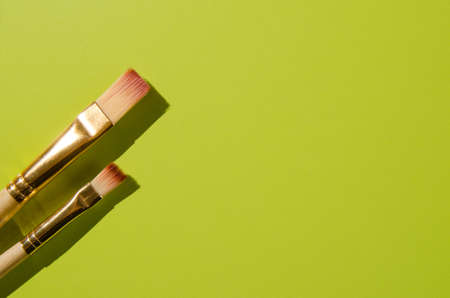 Two paint brushes of different sizes side by side on an olive background. Place for your text.