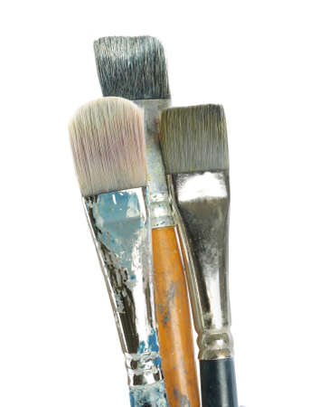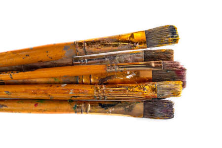 Dirty used paintbrushes isolated on white background