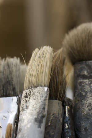 Old painter's brushes, dirty to the edge.