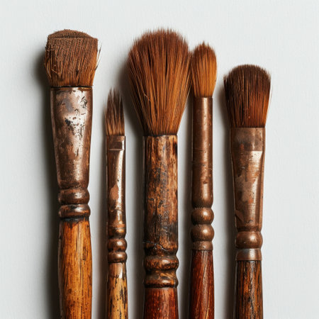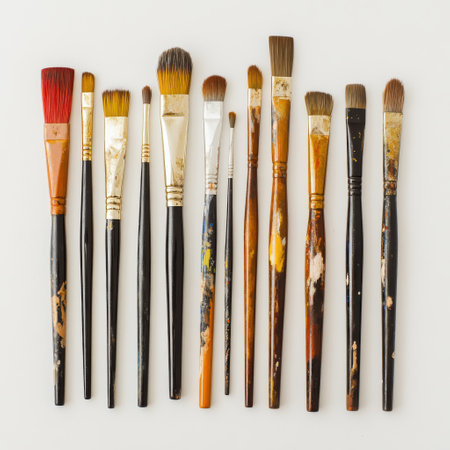 A detailed collection of artistic paintbrushes showcasing various sizes and shapes. Perfect for highlighting creativity and craftsmanship in artistic projects.