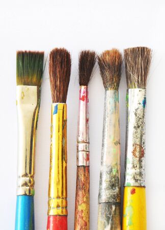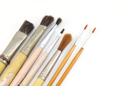 old paint brushes on a white background.